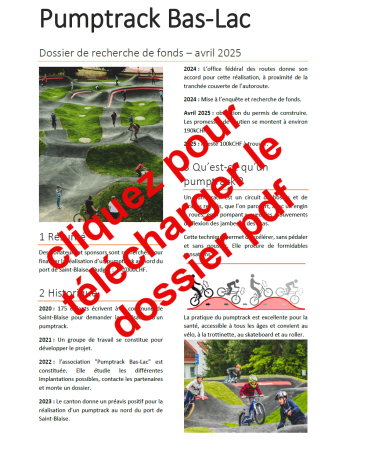 L'association "Pumptrack Bas-Lac" est fondée. Elle étudie les différentes implantations possibles, contacte les partenaires et monte un dossier.